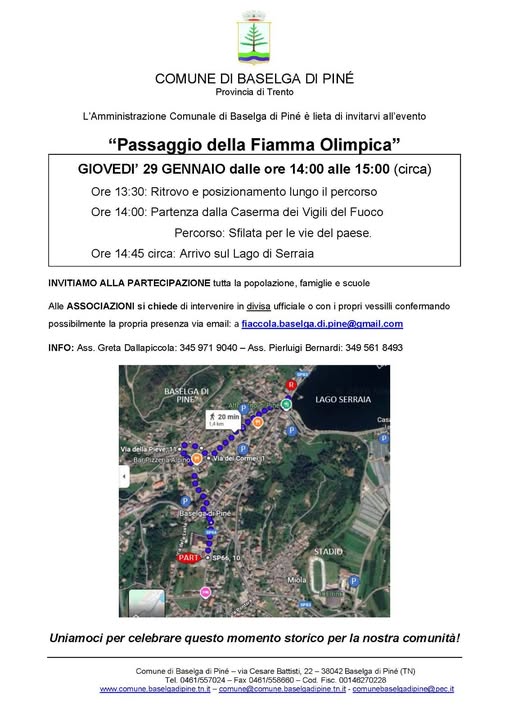 Avviso di invito alla popolazione e Ordinanza di divieto di transito e di sosta per fiamma olimpica 29/01/2026